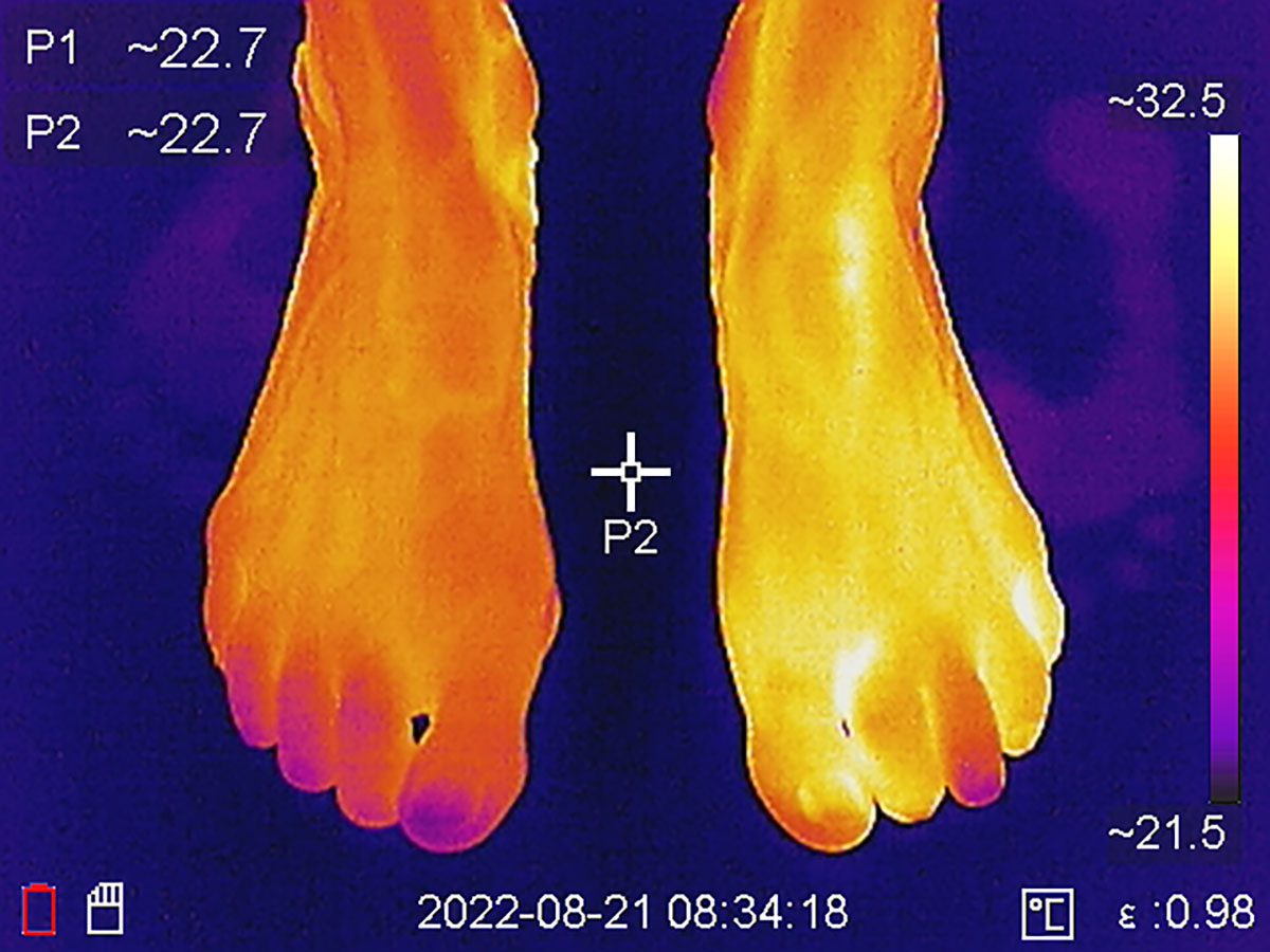 Verschleissprozesse und Verletzungen des Bewegungsapparates führen zu Entzündungsreaktionen. Der Entzündungsprozess führt zu einer Heilung des Gewebeschadens, gleichzeitig auch zu einer Durchblutungssteigerung und Temperaturerhöhung. Diese Temperaturerhöhung kann mit der Thermographiekamera erfasst werden sofern sie zu einer Erhöhung der Oberflächentemperatur > 0,3° führt.