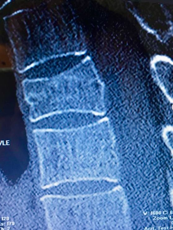 Ein 48-jähriger Patient leidet seit sechs Monaten an chronischen thorakalen Rückenschmerzen mit Ausstrahlung in die rechte Schulter nach einer BWK4- Deckplattenkompressionsfraktur, die er sich bei einem Mountainbikesturz zugezogen hatte. Die Fraktur wurde zunächst konservativ mit Schmerzmitteln nach WHO-Schema behandelt. Nach sechs Wochen konnte er bei stabiler Knochensituation und erfolgter MRT-Kontrolle mit Physiotherapie beginnen und wieder eingeschränkt in den beruflichen Alltag eingegliedert werden. Stoß- und Sprungbelastungen wurden für zwölf Wochen gemieden. Nach sechs Monaten plagten ihn immer noch anhaltende, mittlerweile chronische Rückenschmerzen, die zudem nun in die rechte Schulter ausstrahlten. Ein sensomotorisches Defizit wurde verneint. Er hatte einen hohen Leidensdruck, nachdem er selbst im normalen Alltag Schmerzen auf einer visuellen Analogskala von 7/10 angab und seiner Leidenschaft – dem Radfahren – nicht mehr nachgehen konnte. Wegen unerwünschter Nebenwirkungen hatte der Patient seine Schmerzmedikation mit Ibuprofen und Tilidin retard bereits nach drei Monaten beendet.