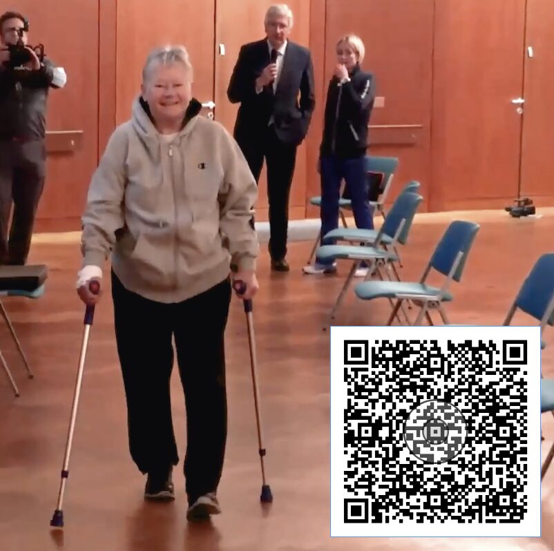 Bei diesem Procedere steht der Patient 2 – 3 Stunden nach der OP auf und geht mit Gehstützen, um sich noch abzustützen. Achtung: Nicht zu tief einstellen und den Storchengang beherzigen, damit der Patient aus dem präoperativ eingeschliffenen Gehmuster herauskommt. Es ist ein großes Erlebnis für den Patienten, dass er gleich nach der OP gehen kann, voll auftreten darf und realisiert, dass er sofort schmerzfrei – oder zumindest deutlich schmerzreduziert – gehen kann. Mit diesem Vorgehen habe ich als erster in Deutschland gemeinsam mit meinem Team ein systematisches fast track Regime erstellt, das auch die ambulante Knie- und Hüftprothesenoperation ermöglicht. Mit der ambulanten Implantation künstlicher Gelenke habe ich 2019 begonnen. Wegen der allgemeinen Skepsis habe ich auch bei einer älteren Patientin die Hüftprothesenoperation als Live-OP demonstriert. Diese schonende, genau ausgefeilte OP-Technik und das Gesamtkonzept ermöglichen die ambulante Prothesenimplantation ohne zusätzliche Risiken- im Gegenteil: die Risiken herkömmlicher Anästhesie, OP-Technik und perioperativer Vorgehensweise werden vermieden. Natürlich muss man Knie- und Hüftprothesen nicht bei allen Patienten ambulant operieren – unser Vergütungssystem steht dem auch entgegen. Von dieser Technik profitieren alle Patienten, auch wenn sie für einige Tage stationär zur Behandlung bleiben.