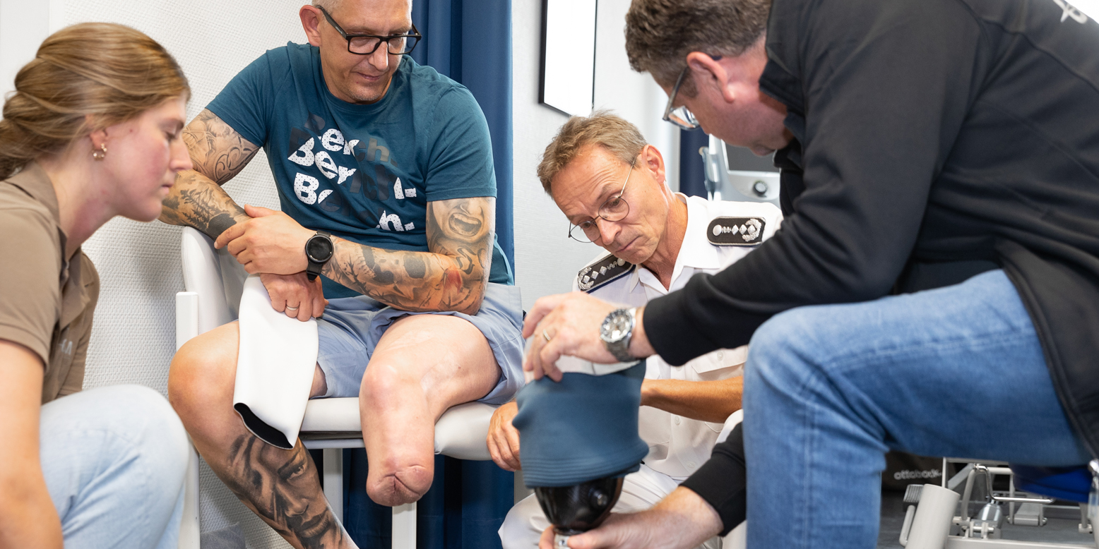 Hilfsmittelplanung am ZSportMedBw im Team aus Patienten, Ortho­pädietechnikern und Facharzt Fotos: © Bundeswehr/von Scheven