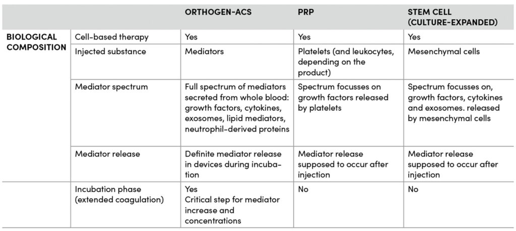 The unique and highly activated secretome profile including the diverse combination of factors in ACS has the ability to reduce the catabolic effects of corticosteroids (CS). Concerns about the potential negative impact of repeated CS injections have increased in recent years (McAlindon, LaValley et al. 2017). However, the side effects of CS appear to be markedly reduced with the addition of ACS. Combined treatment appears to enhance pain relief and reduce the risk of tissue injury associated with corticosteroids (Damjanov, Barac et al. 2018). By addressing acute pain instantly while simultaneously stimulating the body’s natural regenerative processes, it offers both short-term relief and long-term healing that can promote lasting effects.
