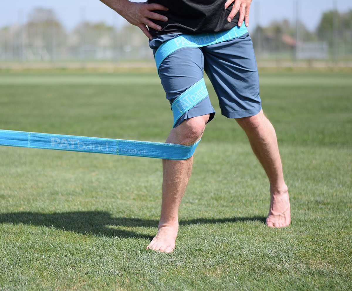 Elastische Bänder werden in der Praxis selten funktionell eingesetzt. Sie dienen oftmals dazu, externen Widerstand bei einer klassischen Kraftübung oder einer isolierten therapeutischen Intervention zu imitieren. Häufig werden sie lediglich als Ersatz für einen Seilzugapparat oder eine Hantel betrachtet. Leider bleibt ihr wahrer Nutzen vor allem für die Knietherapie dabei oft unbeachtet. Im Gegensatz zu den eben genannten Geräten kann ein Band eng am Körper getragen werden. Diese „Strappings“ erzeugen körpernahen Widerstand, welcher Muskelschlingen während einer funktionellen Bewegung aktiviert. Diese Strategie hilft, Schwachstellen in ein komplexes Bewegungsmuster besser zu integrieren, um Kompensationsmuster zu minimieren. In einer Video-Übungsreihe habe ich sechs Übungsprogramme mit jeweils drei Übungen zur Verfügung gestellt. Diese Übungen erweisen sich in der täglichen Trainingspraxis als sehr hilfreich: https://pat.fit/1/gonarthrose/