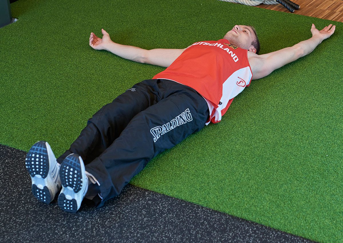 Neben der Haltung sollte ein großer Fokus auf der Atmung liegen. Sitzen verhindert eine optimale Aktivierung des Zwerchfells. Durch die Enge zwischen Brustbein und Schambein nutzt man nur einen Bruchteil des Atemvolumens. Dies hat eine unzureichende Belüftung aller Lungenareale zur Folge. Hier gilt es, betroffene Strukturen gezielt zu stimulieren und zu aktivieren. Je nach Zeitpunkt der Rückenmarksläsion, ob angeboren, frühkindlich erworben oder durch einen Unfall verursacht, fehlen dem Rollstuhlsportler Meilensteine der frühkindlichen Entwicklung wie Rollen und Krabbeln. Diese spielen aber eine wichtige Rolle für die Ausbildung von Bewegungsmustern und die Entwicklung der koordinativen Fähigkeiten. Man kann die Uhr zwar nicht zurückdrehen, aber es gibt immer die Möglichkeit, an diesen Elementen zu arbeiten, sie zu trainieren und zu verbessern (Abb. 4 a + b). Viele Rückenmarksgeschädigte haben keine oder nur eine eingeschränkte Aktivität ihrer Rumpfmuskulatur. Die Rumpfmuskulatur (Bauch- und Rückenmuskulatur) ist der „Kern“ (Core), ohne den ein Aufrichten der Wirbelsäule und damit eine optimale Trainingsposition nicht möglich sind. Der Rumpf bildet somit die Basis für unsere Trainingsübungen und stellt zusammen mit der Atmung das Fundament meiner Idee von Training dar. Deshalb findet sie einen besonderen Platz im Warm-up jeder Trainingseinheit und kann als isolierte Einheit auch unabhängig davon trainiert werden. Dabei ist klar, dass je nach Höhe der Läsion die Rumpfmuskulatur mehr oder weniger gut aktiviert werden kann. Ziel sollte es sein, permanent daran zu arbeiten und die Rumpfmuskulatur zu trainieren. Wie ein solches Haltungstraining aussehen kann, möchte ich in der Folge beschreiben. Dabei kommen primär Übungen zur Verbesserung der Mobilität und Stabilität zum Einsatz. Ergänzt werden sie durch S.A.M. – Übungen zur Sensibilisierung der Gelenke, Aktivierung von Atmung und Augen sowie der Mobilisation unserer Gelenke, die ich jeder Trainingseinheit vorwegstelle.