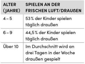 Tab. 1 Bewegung an der frischen Luft, Kinder und Jugendliche [4]